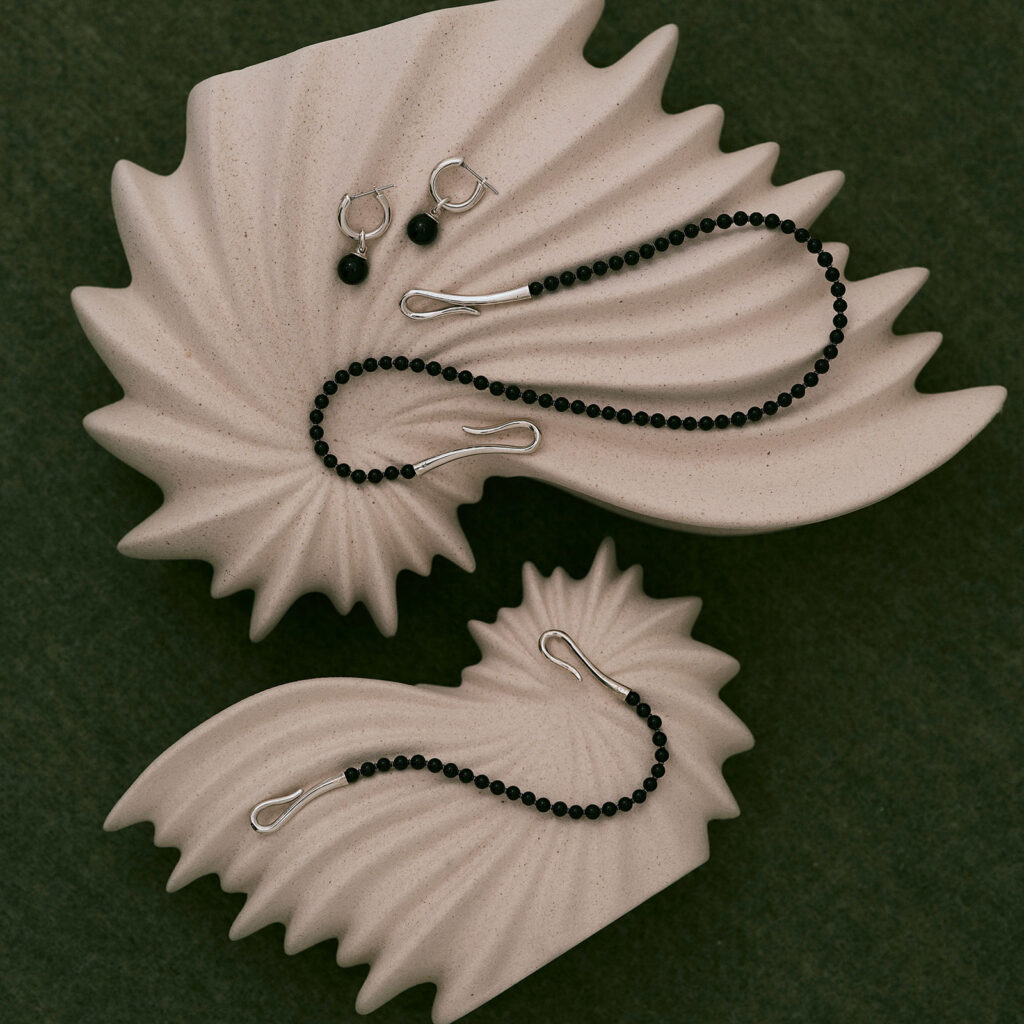上品な輝きを放つシルバーパーツに、天然石のブラックオニキスを組み合わせたシリーズです。